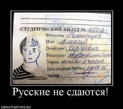 | так, с фото пока завязывают, иду в штыки цытаты из Бездны: xxx: Google новости: Шаманов: желающих служить в ВДВ по-прежнему много. xxx: Я сначала двоеточие не заметил ))) AiR: Облажался я тут по полной сегодня. Работаем на крыше монтируем здоровые буквы компании ЗАРЯ. Я как раз за последней стою с дрелью и тут звонок шефа. - Ты где? - Я тут, за "Я" - Какая нафиг зая??? Sirion: Судя по звуку, троллейбус готовится совершить гиперпространственный прыжок. Mr.Spleen: Судя по звуку, он готовится развалиться нафиг. rinel: Один товарищ рассказывал: шел он с работы, нес в сумке баллончик с золотой краской - оформлял стенд на работе. И вот подходит к нему цыганка и нагло требует: "А позолоти ручку!" Думаю, что было дальше, и так ясно xxx: Подарили модельку самолетика xxx: Читаю - not for children under 14 xxx: Потом руский перевод - для детей старше трех лет xxx: Суровые русские дети... Недавно по первому каналу показывали беседу В. В. Путина с главой Газпрома, не помню, как его имя. Меня смутила фраза главы нефтяной компании, когда он заявил: "В данном случае это сильно заинтересует российских, иностранных, а также других инвесторов". Интересно. Российские инвесторы - это те, кто из России. Иностранные инвесторы - это те, кто из других стран, не из России. А кто тогда еще другие инвесторы, которых он тоже упоминает? С Альфа Центавры? Ather: ИМХО, когда Ктулху проснётся - ему не у кого будет высасывать мозг... Население стремительно тупеет. Юра: почему???я думаю электромагнитные волны распределяются по объему. Виталий: в моей комнате ловит стопицот каналов связи (спутниковое ТВ, ЖПРС, вай-фай, всевозможные радиостанции, телеоператоры, спутниковый инет), то им у меня в комнате ТЕСНО?)) то есть если каналов будет меньше, то качество будет лучше?)) "Юра" вышел из сети Виталий: йо ...вот его уже вытеснило волнами. мне ж теперь ужастики сниться будут Вася: дааа) как блин тебя ночью волны вытсняют из родной хаты CKuB:На ул.Комунны видели сегодня "Центр хоккея на траве". CKuB:Цвет оформления здания - с ярко-розовыми кислотными полосами. CKuB:Вопрос - "На какой траве?" - отпал сам собой... (прим. авт. на нашей))