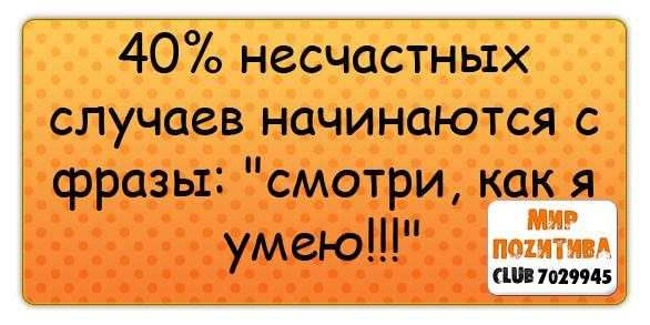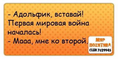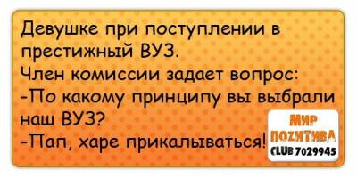 | - У меня на флешке куча новых файлов появилось, причем открывается и вполне полезная информация! Может быть такой вирус? - Да, вирус называется "не твоя флешка". --------------- Заходит девочка лет 12 в магаз, и спрашивает: "Где у вас игры для компа ?" Опытный продавец молча даёт ей Sims2. Девочка: "Неее, мне виндовз нужен" Продавец даёт диск с XP. Девочка: "А... это программа, а мне игры под XP нужны." Продавец молча указывает на стойку с играми. Девочка задумчиво берёт диск Sims2. ------------------------ Однажды ночью летит над Нью-Джерси старенький такой кукурузник. На борту пять человек: пилот, Майкл Джордан, Билл Гейтс, Далай Лама и хиппи. Вдруг в багажном отсеке с грохотом взрывается бомба. Салон наполняется дымом. Дверь в кабину открывается, в салон выскакивает пилот. "Значит так, джентельмены," - говорит он, "У меня две новости, хорошая и плохая. Плохая - это то, что мы сейчас шмякнемся где-то посреди Нью-Джерси. Хорошая - то, что на борту четыре парашюта, и один из них мой!" С этими словами он распахивает дверь и выпрыгивает наружу. Через секунду вскакивает Майкл Джордан. "Джентельмены," - говорит он, "я самый лучший в мире баскетболист. Миру нужны великие баскетболисты. По-моему, самый лучший баскетболист должен получить парашют." С этими словами он хватает один из оставшихся парашютов и с разбегу выпрыгивает наружу, в темноту. Поднимается Билл Гейтс и говорит: "Джентельмены, я самый хитроумный человек на земле. Миру нужны хитроумные люди, такие как я. Полагаю, что самый хитроумный человек на земле тоже должен получить парашют." Он хватает ранец и - прыг наружу. Далай Лама и хиппи смотрят друг на друга. Наконец, Далай Лама говорит: "Сын мой, я прожил счастливую жизнь и познал блаженство Истинного Знания. У тебя жизнь еще вся впереди, так что надевай парашют и - вперед." Хиппи неспешно улыбается и отвечает: "Ша, папаша, все нормально. Самый хитроумный парень на земле только что сиганул вниз с моим рюкзаком." ------------- - Стас, я в интернете в чате с такой девчонкой познакомился, ей 17 лет, она юна и непорочна, красива как богиня и жаждет встречи со мной. - А её случайно не Изольда зовут? - А ты откуда знаешь? - Ну, здравствуй, Антуан. ------------------------ IBes. Сегодня на работе: выхожу с кабинета и вижу как два админа чтото тащат. Я им: Опять с работы чтото тащите. Ответ админа убил: Ты говори больше и без инета останешься. Оспорить было не чем. (с) bash.org ---------------------------- Последняя разработка для вашего компьютера. USB-унитаз. Совмещает все достоинства обычного унитаза и быстрый спуск содержимого в интернет.